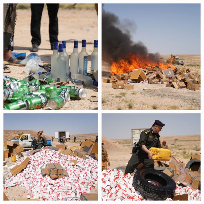 الأجهزة الأمنية والقضائية في المهرة تتلف كمية من المخدرات والخمور والأدوية المهربة