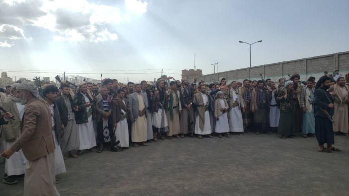 قبائل الحيمة تحتشد في صنعاء وتتهم المليشيا بالتواطؤ مع خاطفي أحد أبنائها