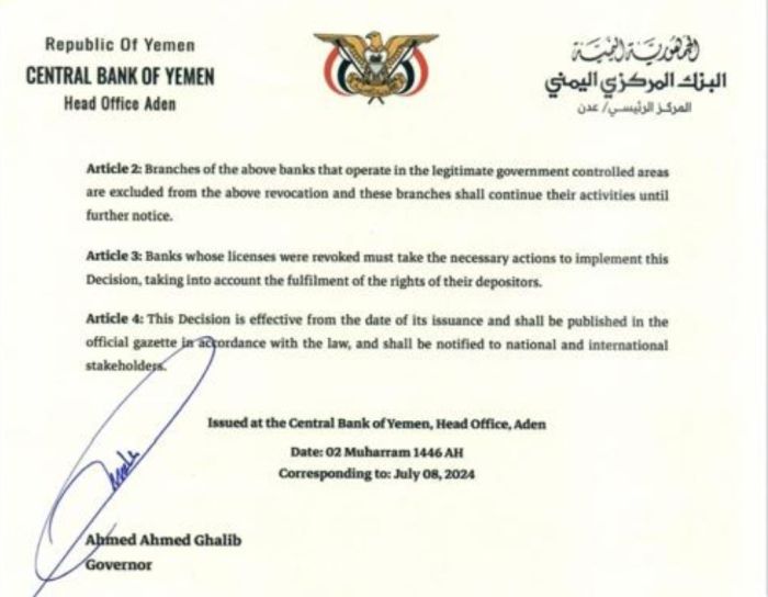 البنك المركزي اليمني يلغي تراخيص ستة بنوك
