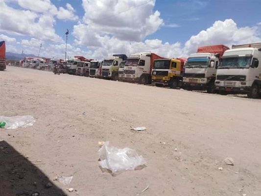 تعز .. مليشيا الحوثي تحتجز عشرات الشاحنات في منفذ مستحدث