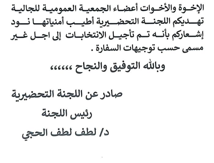 تأجيل انتخابات الهيئة الإدارية للجالية اليمنية في مصر