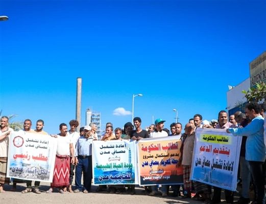 محتجون يطالبون بإعادة تشغيل مصافي عدن