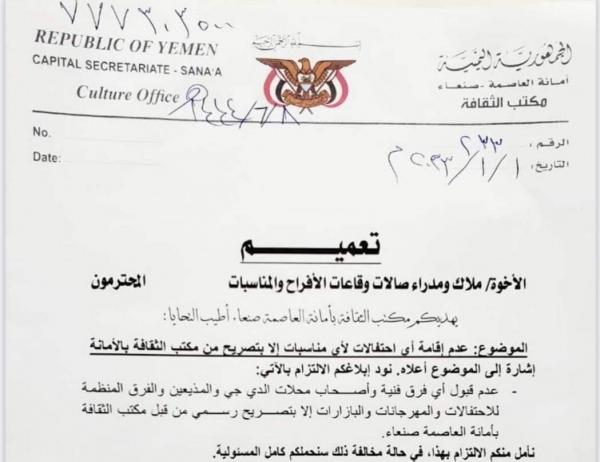 ميليشيا الحوثي تمنع اقامة أي احتفاليات بدون تصريح