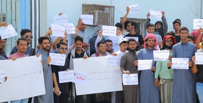 طلاب جامعة العلوم والتكنولوجيا بحضرموت ينفذون وقفة احتجاجية