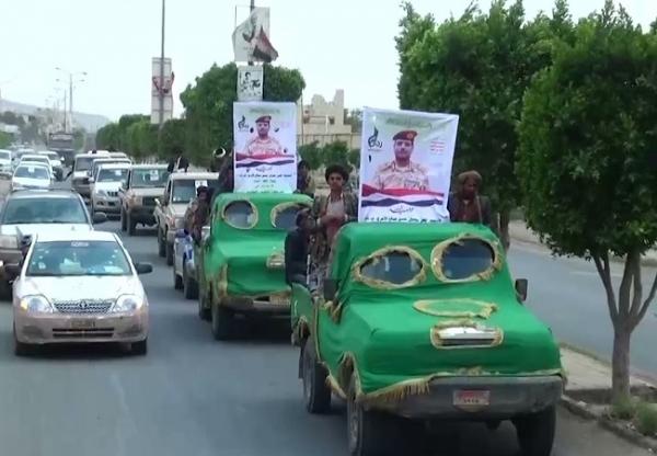 دفعة ثانية من درع الوطن اللواء الأول الفرقة الأولى تدخل محافظة عدن وتتجه إلى مقر قيادة الدرع