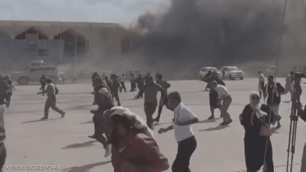 قتلى وجرحى في انفجارات عنيفة هزت مطار عدن أثناء وصول الحكومة