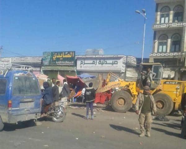 مليشيات الحوثي تجرف عربات وبسطات الباعة في أحد أسواق ذمار