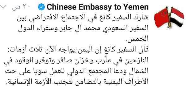 بكين تدعو المجتمع الدولي لحث الأطراف اليمنية على إنهاء الصراع