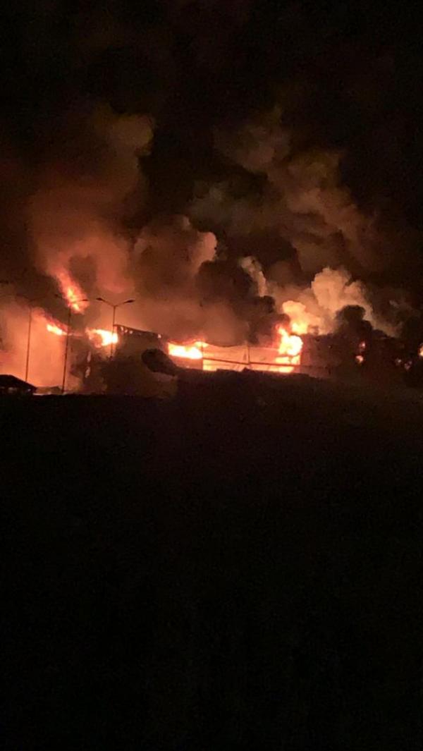 اندلاع حريق هائل في معرض الإمبراطور للمفروشات بصنعاء