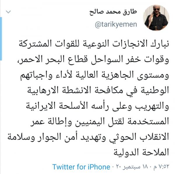 العميد طارق صالح يبارك الإنجازات النوعية للقوات المشتركة وقوات خفر السواحل