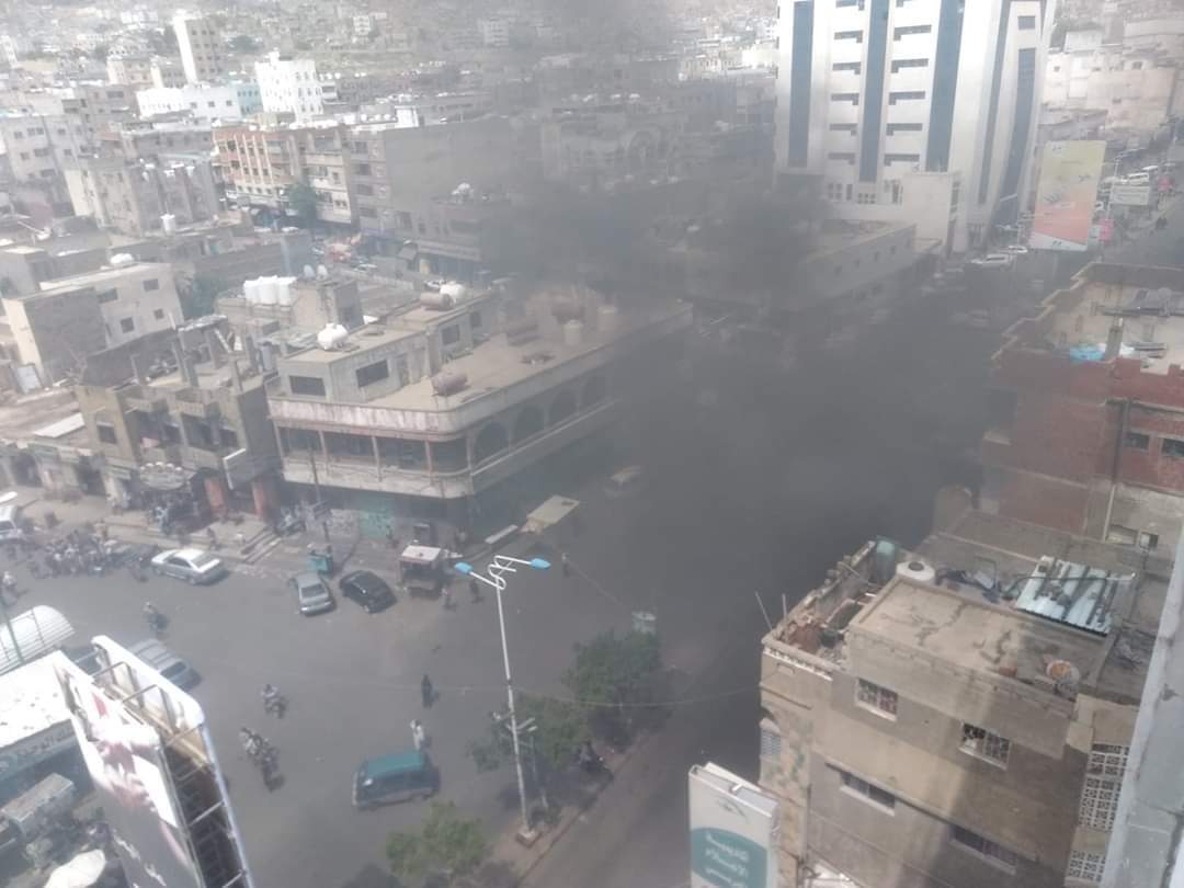 حرائق واسعة وقطع عدد من الشوارع الرئيسية في تعز