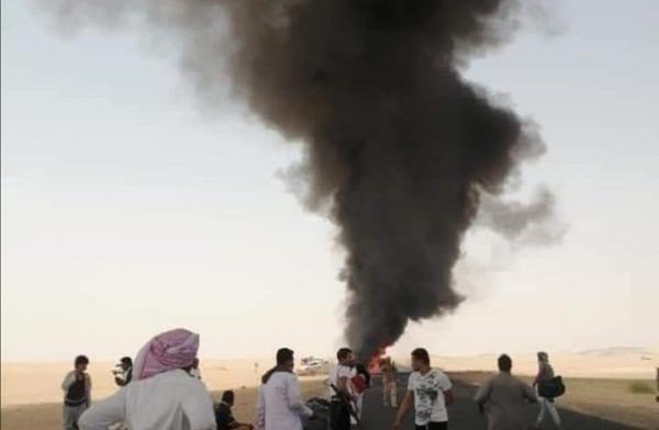 احتراق باص للنقل الجماعي على طريق العبر بحضرموت