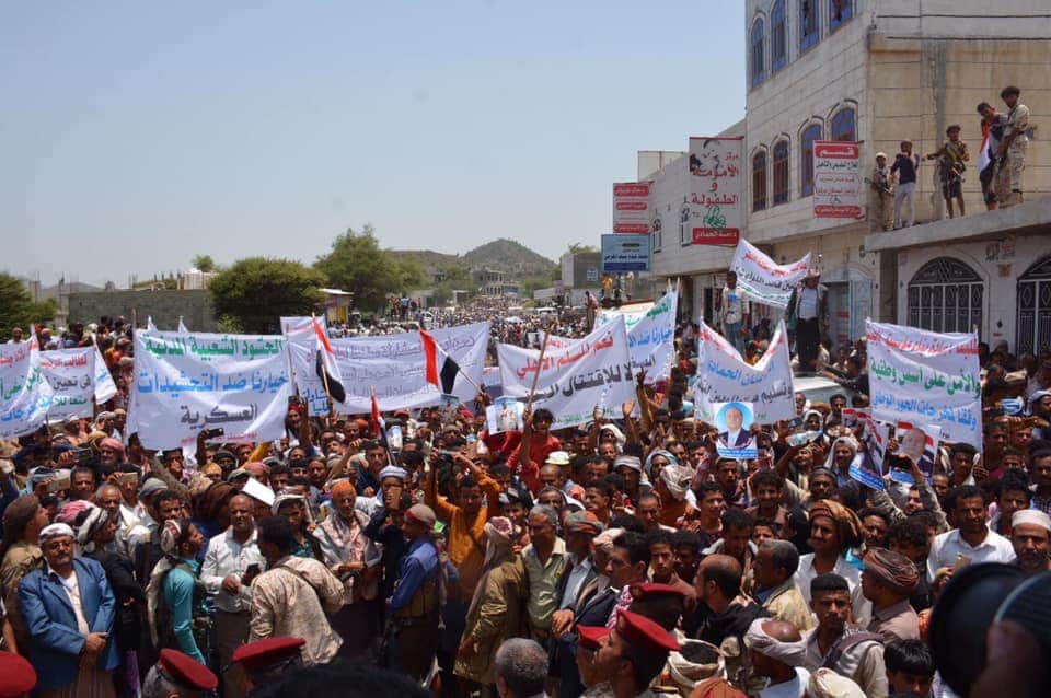 مسيرة حاشدة رفضاً لتحركات الإخوان في الحجرية