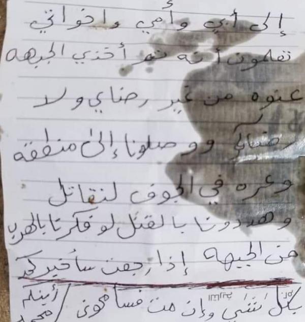 رسالة أليمة في جيب طفل ضمن قتلى الحوثيين بالجوف