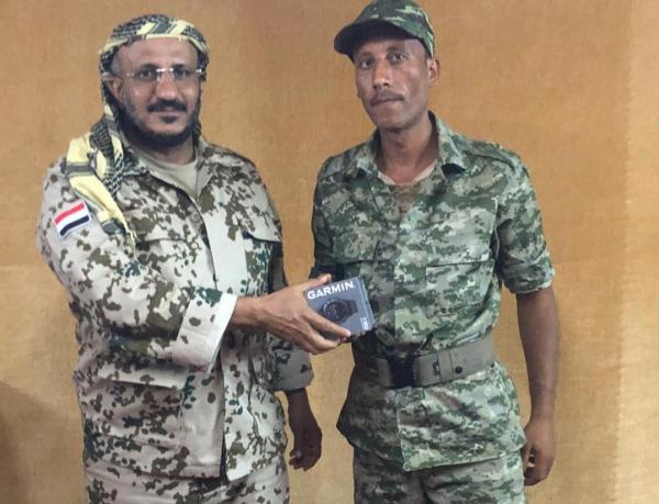 العميد طارق صالح يكرم مقاتلا جمهوريا صد هجوما انتحاريا حوثيا