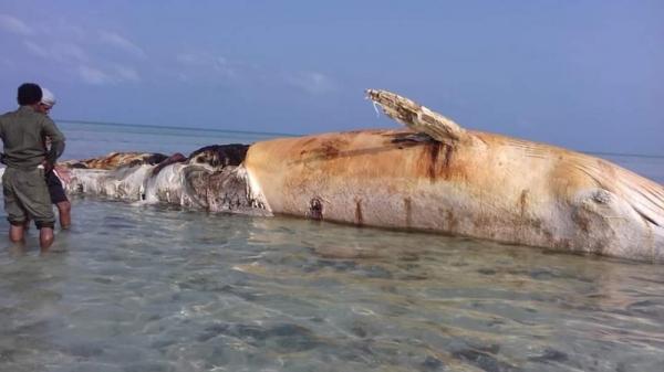 نفوق حوت ضخم بسب انفجار لغم حوثي بحري