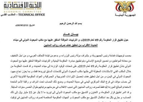 لجنة حكومية تكشف عن ترتيبات لصرف مرتبات المدنيين