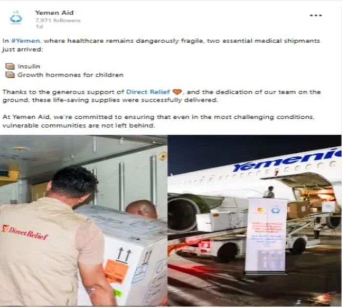 Direct Relief offered Insulin Insulin and other medical aid to Yemen