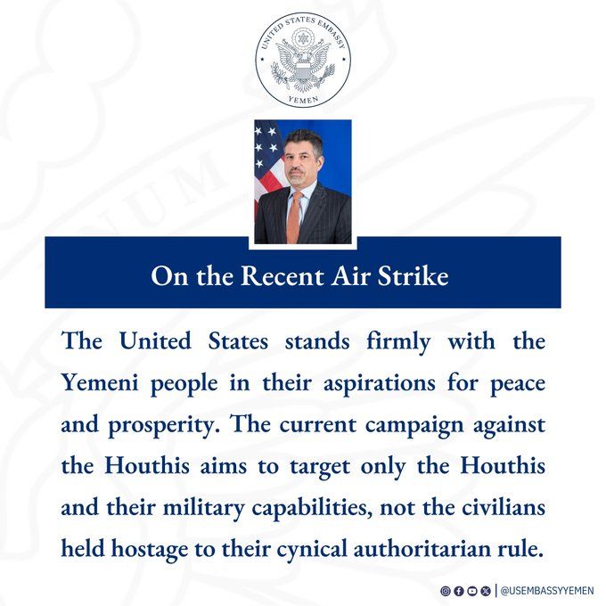 U.S. Ambassdor: The recent air attacks aims at Houthi rebels.