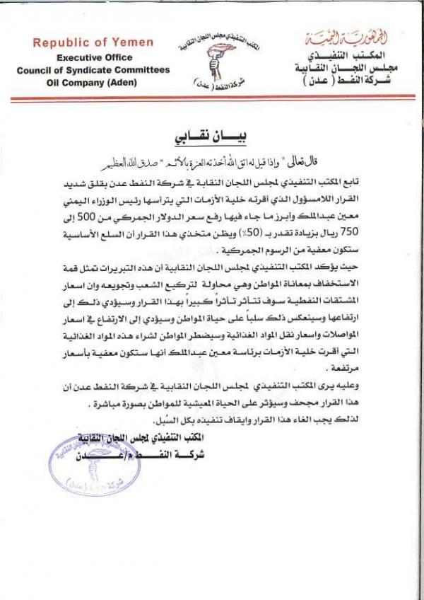 مجلس اللجان النقابية النفطية يطالب بإلغاء قرار رفع الدولار الجمركي