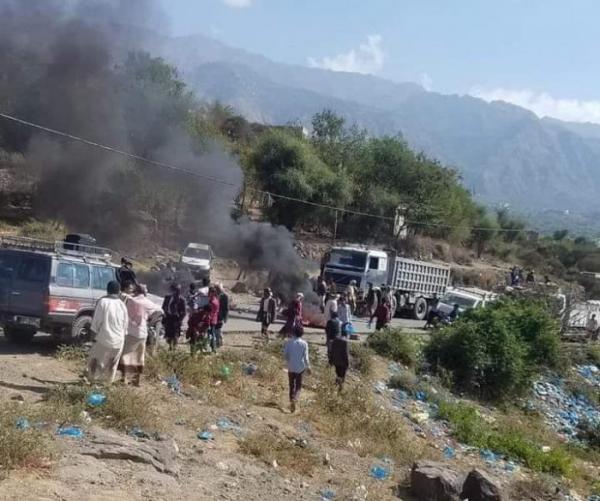 قطع مسلحون مجهولون، ظهر اليوم الخميس، الطريق الرئيسي الواصل إلى مدينة تعز باتجاه منطقة نجد قسيم.