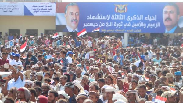 اكتظت مدينة المخا لأول مرة في تاريخها بعشرات الآلاف من المواطنين الذين توافدوا إليها من مختلف مديريات الساحل الغربي وعموم محافظات الجمهورية، لإحياء الذكرى الثالثة لاستشهاد الزعيم الخالد علي عبدالله صالح ورفيق دربه الأمين عارف عوض الزوكا وكوكبة من احرار اليمن في انتفاضة الثاني من ديسمبر التي انطلقت من قلب العاصمة صنعاء ضد ميليشيات الحوثي الكهنوتية والمشروع التوسعي الايراني.
