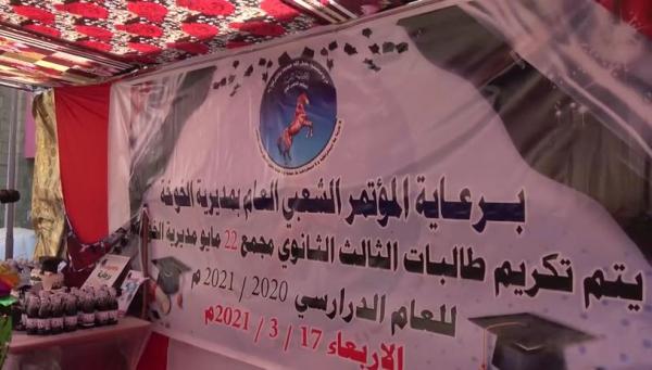 أقام مجمع 22 مايو للبنات بمديرية الخوخة حفلا تكريميا لطالبات الصف الثالث الثانوي بمناسبة قرب انتهاء العام الدراسي، بدعم ورعاية فرع المؤتمر الشعبي العام بالمديرية.