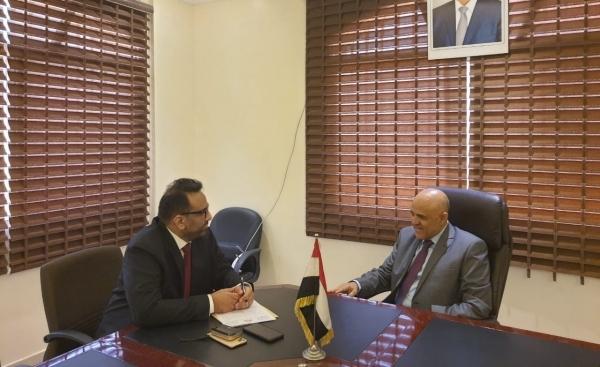 جاء ذلك خلال لقاء مع المدير التنفيذي لشركة النفط المهندس عمار العولقي لمناقشة أوضاع المشتقات النفطية وإعادة فتح فرع الشركة بالمحافظة، متطرقا إلى معاناة أبناء المحافظة للحصول على المشتقات النفطية.