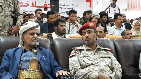 وفي الحفل ألقى رئيس هيئة الأركان العامة قائد العمليات المشتركة الفريق الركن صغير حمود بن عزيز، كلمة أكد فيها الدور البطولية للشهيد البطل علي ناصر القردعي الرافض للعبودية والاستبداد ، فكانت الرصاصات التي وجهت إلى صدر الطاغية هي الشرارة الأولى لقيام ثورة 1948، .