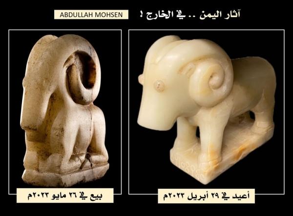 ورجّح الباحث محسن، في منشور له على صفحته في "الفيس بوك"، أن هذه القطعة الأثرية المعروضة للبيع، قد تكون هي ذاتها التي استرجتعها الحكومية اليمنية من بين ثلاث قطع أثرية تم إعادتهن لليمن من أمريكا بقيمة ألف دولار.