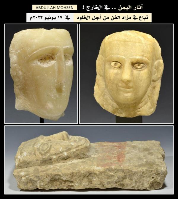 كشف خبير الآثار عبدالله محسن عن بيع ثلاث قطع من الآثار اليمنية في مزاد فني في نيويورك بالولايات المتحدة الأمريكية، منتصف شهر يونيو الجاري.