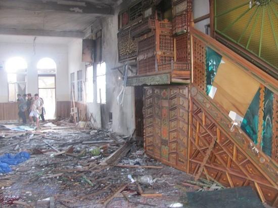 استهدف شركاء ساحات الانقلاب قيادة الدولة في بيت من بيوت الله أثناء أداء صلاة الجمعة بهدف القضاء على مؤسسات الدولة تماما ما يمهد الساحة أمام شركاء الخراب وقوى الإرهاب للسيطرة على البلد وموارده وقراره ورهن مصيره وسيادته لاجندات غير وطنية.