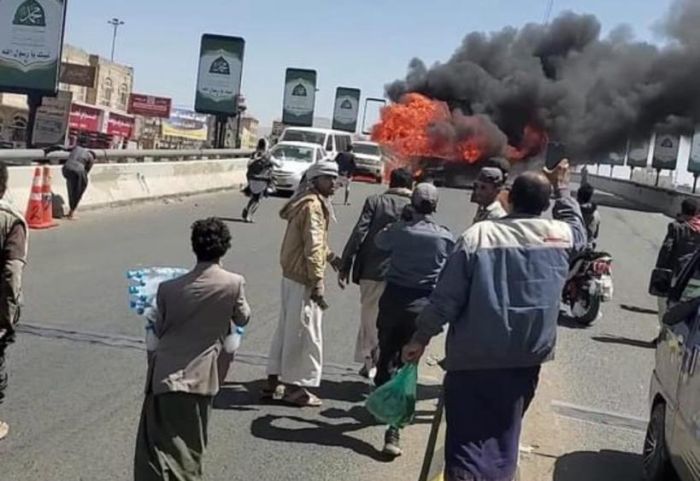 اندلع حريق هائل، ظهر الثلاثاء ، فوق جسر جولة عمران شمالي صنعاء، ما أدى إلى احتراق عدد من السيارات.