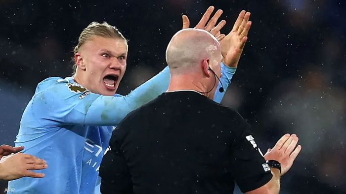 وشهدت الدقائق الأخيرة من مباراة مانشستر سيتي ضد توتنهام، اعتراض إيرلينج هالاند ضد حكم اللقاء سايمون هوبر بعد اطلاقه صافرة النهاية في هجمة مرتدة لنادي السيتي.