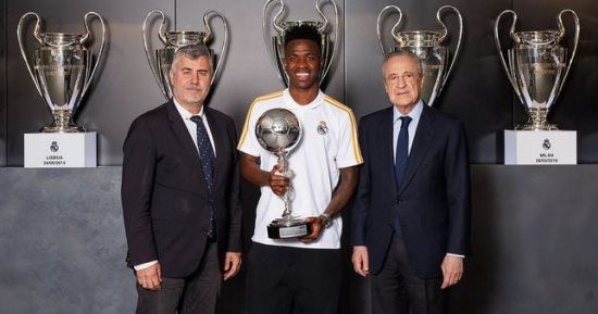 وتسلم فينيسيوس جونيور، الجائزة في حضور فلورنتينو بيريز، رئيس نادي ريال مدريد، بالإضافة إلى ميجيل أنخيل أوليفر، رئيس وكالة الأنباء.