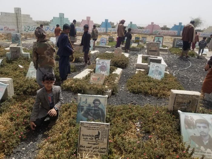 إضافة إلى ذلك، تُجبر الميليشيا كافة الأطفال على ترديد صرختها المتطرفة عند دخول مقابر قتلاها وعند القبور ذاتها، وعند الخروج تُجبرهم الميليشيا على تأدية وترديد القسم الحوثي العنصري الذي يتضمن الولاء للجماعة الميليشياوية وقيادتها وعدم مخالفتها، والبراء من اليهود والأعداء وما تقول عنهم بأنهم مرتزقة في إشارة للقوات المناهضة للميليشيا.