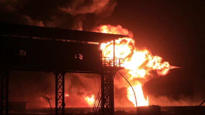 مصادر أفادت، إن الإنفجار والحريق الجديد اندلع من خزان 38 بترول، نتيجة إشتداد حرارة النيران التي اقتربت منه، واسفر الحريق عن وقوع 6 مصابين من عمال الميناء.