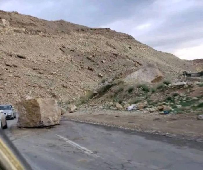 وأظهرت صور ومقاطع فيديو، انهيارات صخرية في غولة عجيب، ما أدى إلى عرقلة حركة السير.