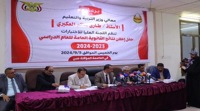 أعلنت وزارة التربية والتعليم في الحكومة اليمنية نتائج الثانوية العامة للعام الدراسي 2023/ 2024.
