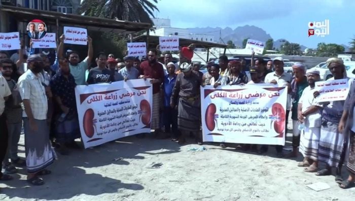 نظم مرضى الكلى في العاصمة الموقتة عدن، وقفة احتجاجيه أمام مستشفى الجمهورية، للمطالبة بتوفير الأدوية اللازمة للأمراض المزمنة.