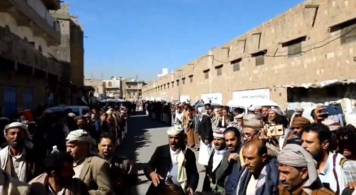 وردد المتظاهرون شعارات تطالب بتنفيذ القصاص العادل، مشددين على رفضهم دفن جثث الضحايا إلا بعد القصاص من القاتل والمتورطين معه، وأشاروا إلى مماطلة الميليشيا الحوثية.