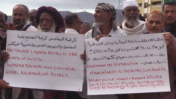 خرج آلاف المتقاعدين والموظفين، المنتمين للسلك المدني والعسكري والأمني بالهيكل الإداري للدولة، في وقفة احتجاجية نفذوها، الأربعاء، بمدينة عدن؛ للمطالبة بصرف المرتبات المتأخرة منذ ثلاثة أشهر.
