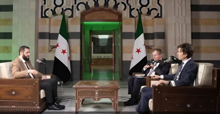 وفي مدونة صوتية (بودكاست) مع أليستر كامبل المتحدث السابق باسم رئيس الوزراء البريطاني السابق توني بلير، وروري ستيورات، الوزير البريطاني المحافظ السابق، قال الشرع وفق تصريحاته المترجمة الى اللغة الانجليزية، إنه لم يفرض التجنيد الإجباري بل اختار التجنيد الطوعي، لافتا الى أن الآلاف انضموا إلى الجيش السوري الجديد.