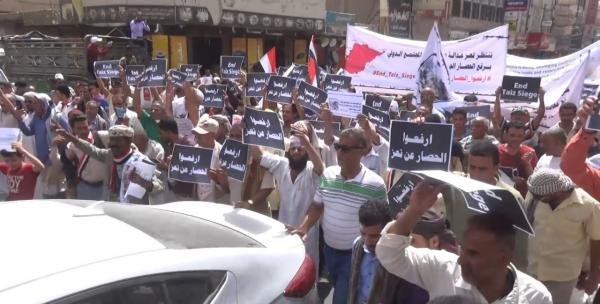 مسيرة جماهيرية حاشدة للمطالبة برفع الحصار عن تعز