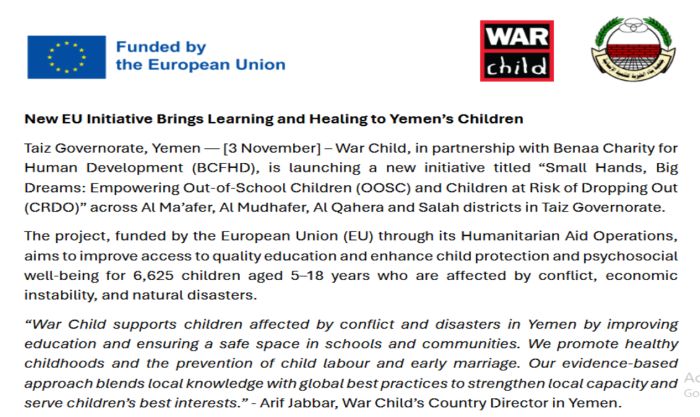 New EU Initiative Brings Learning and Healing to Taiz Children