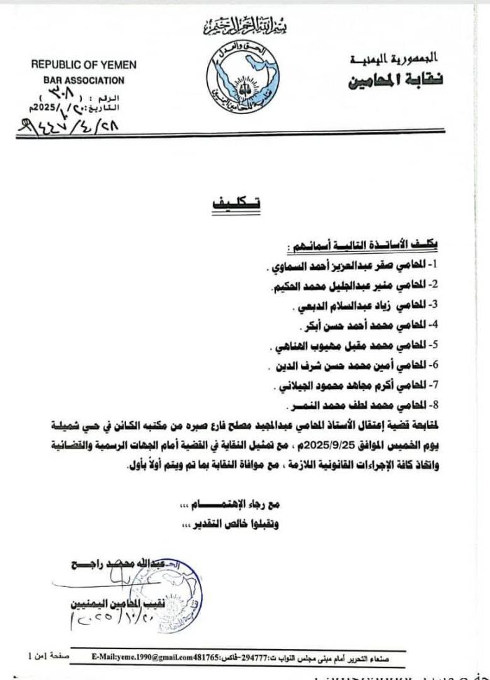 صنعاء.. نقابة المحامين تشكل فريقا قانونيا لمتابعة قضية اختطاف المحامي عبدالمجيد صبرة