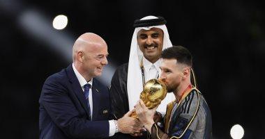 ميسي يرتدي عباءة من أمير قطر ويرفع كأس العالم 2022.. فيديو وصور