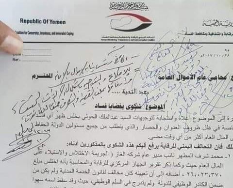 ومحمد المطهر يعد من كبار الفاسدين التابع للجماعة الحوثية، بحسب وثائق رفعتها هيئة الرقابة والشفافية ومكافحة الفساد الحوثية، إلى محامي عام الأموال العامة.