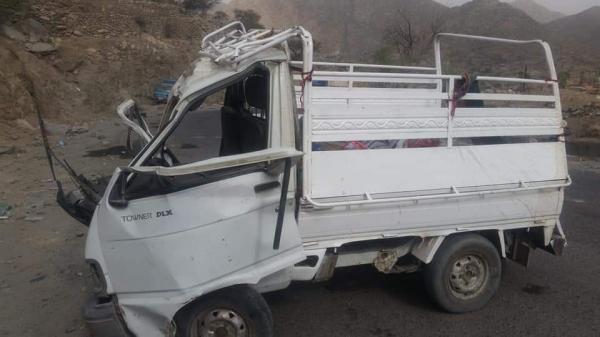 وقالت مصادر محلية، إن "دباب من نوع (دايو) على متنه أسرة كاملة، تعرض للانقلاب بسبب تعطل الفرامل في عقبة الجن بقرية عَيْرِيم، على خط القبيطة العام".