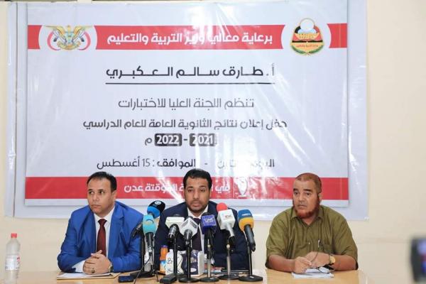 أعلنت وزارة التربية والتعليم، اليوم بالعاصمة المؤقتة عدن، نتائج اختبارات شهادة الثانوية العامة بقسميها العلمي والأدبي للعام الدراسي 2022/2021، بنسبة نجاح بلغت 91.9%.